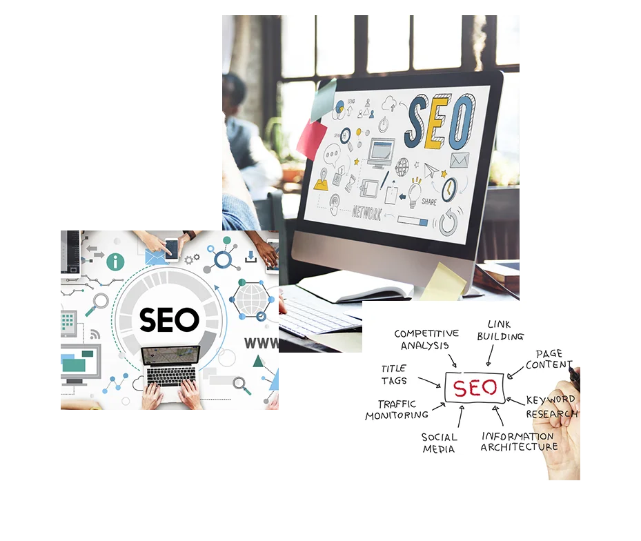 We enhance search engine rankings by optimizing elements such as headlines, HTML tags (including header, title, and meta tags), images, and content on web pages.
